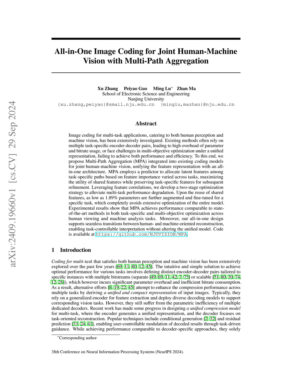 Image coding for multi-task applications, catering to both human perception and machine vision, has been extensively investigated. Existing methods often rely on multiple task-specific encoder-decoder pairs, leading to high overhead of parameter and bitrate usage, or face challenges in multi-objective optimization under a unified representation, failing to achieve both performance and efficiency. To this end, we propose Multi-Path Aggregation (MPA) integrated into existing coding models for joint human-machine vision, unifying the feature representation with an all-in-one architecture. MPA employs a predictor to allocate latent features among task-specific paths based on feature importance varied across tasks, maximizing the utility of shared features while preserving task-specific features for subsequent refinement. Leveraging feature correlations, we develop a two-stage optimization strategy to alleviate multi-task performance degradation. Upon the reuse of shared features, as low as 1.89% parameters are further augmented and fine-tuned for a specific task, which completely avoids extensive optimization of the entire model. Experimental results show that MPA achieves performance comparable to state-of-the-art methods in both task-specific and multi-objective optimization across human viewing and machine analysis tasks. Moreover, our all-in-one design supports seamless transitions between human- and machine-oriented reconstruction, enabling task-controllable interpretation without altering the unified model. Code is available at https://github.com/NJUVISION/MPA.