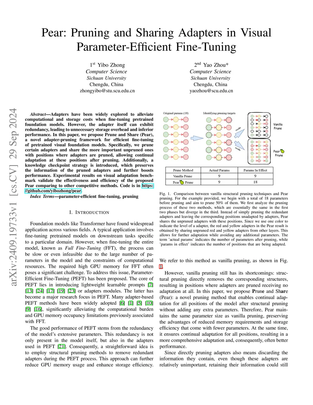 Pear: Pruning and Sharing Adapters in Visual Parameter-Efficient
