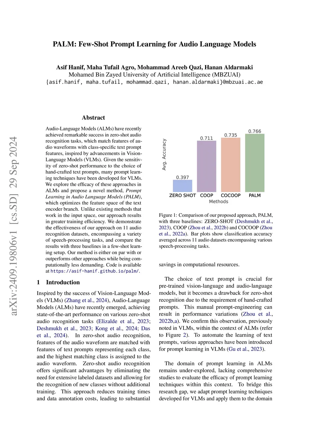 PALM: Few-Shot Prompt Learning for Audio Language Models