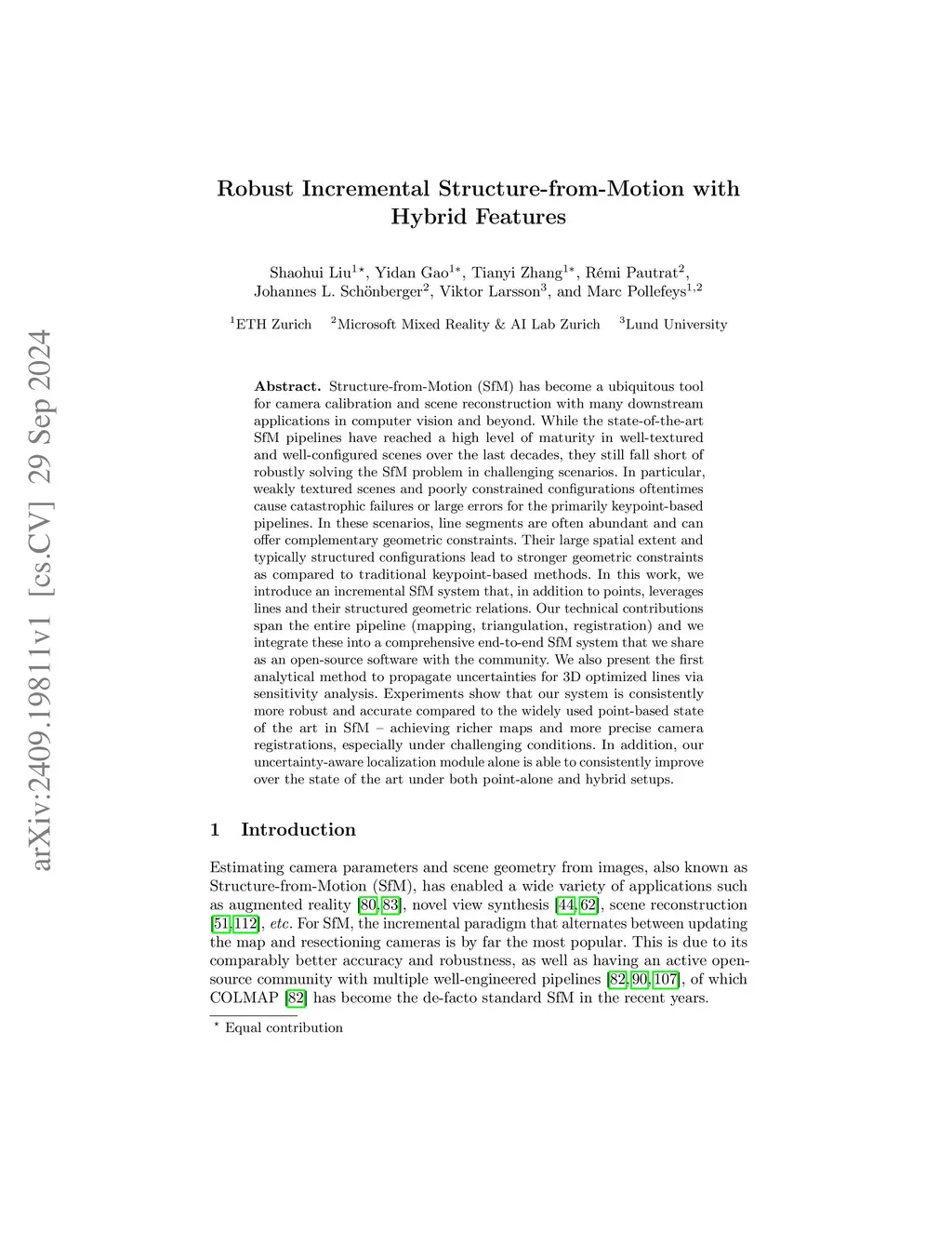Robust Incremental Structure-from-Motion with Hybrid Features