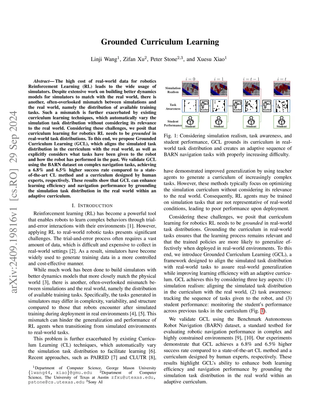 Grounded Curriculum Learning