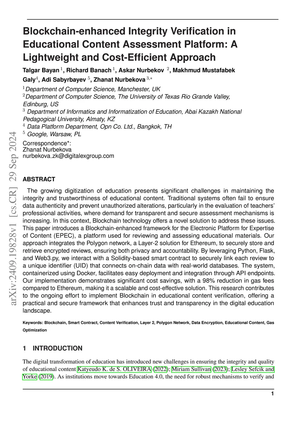 Blockchain-enhanced Integrity Verification in Educational Content