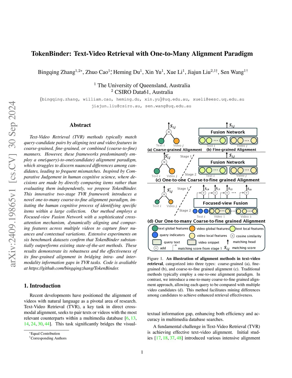 TokenBinder: Text-Video Retrieval with One-to-Many Alignment Paradigm