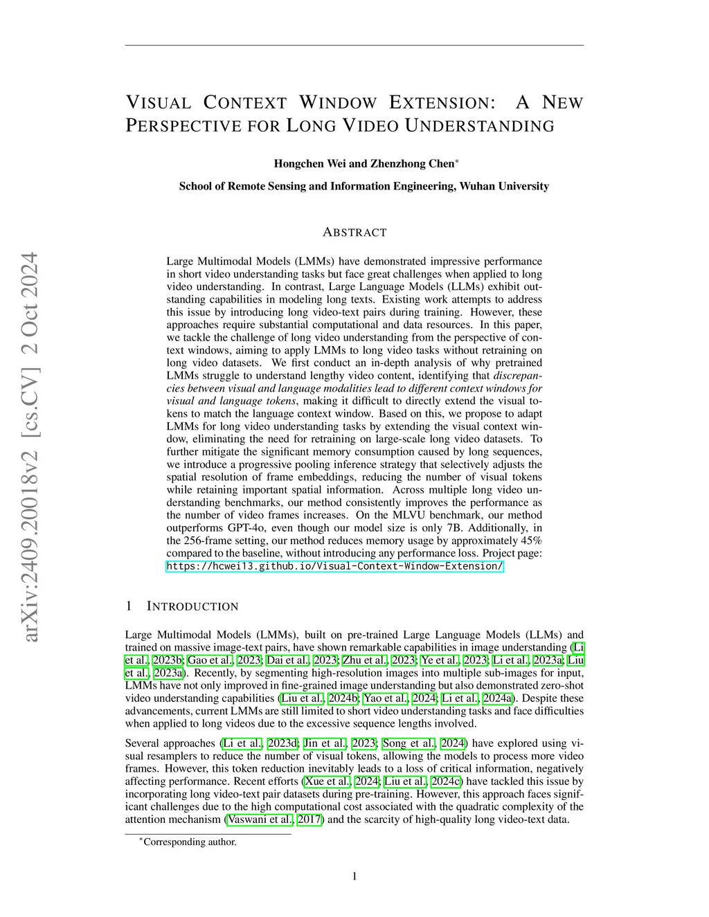Large Multimodal Models (LMMs) have demonstrated impressive performance in short video understanding tasks but face great challenges when applied to long video understanding. In contrast, Large Language Models (LLMs) exhibit outstanding capabilities in modeling long texts. Existing work attempts to address this issue by introducing long video-text pairs during training. However, these approaches require substantial computational and data resources. In this paper, we tackle the challenge of long video understanding from the perspective of context windows, aiming to apply LMMs to long video tasks without retraining on long video datasets. We first conduct an in-depth analysis of why pretrained LMMs struggle to understand lengthy video content, identifying that discrepancies between visual and language modalities lead to different context windows for visual and language tokens, making it difficult to directly extend the visual tokens to match the language context window. Based on this, we propose to adapt LMMs for long video understanding tasks by extending the visual context window, eliminating the need for retraining on large scalelong video datasets. To further mitigate the significant memory consumption caused by long sequences, we introduce a progressive pooling inference strategy that selectively adjusts the spatial resolution of frame embeddings, reducing the number of visual tokens while retaining important spatial information. Across multiple long video understanding benchmarks, our method consistently improves the performance as the number of video frames increases. On the MLVU benchmark, our method outperforms GPT-4o, even though our model size is only 7B. Additionally, in the 256-frame setting, our method reduces memory usage by approximately 45% compared to the baseline, without introducing any performance loss.
