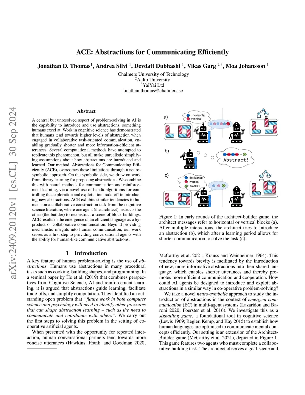 A central but unresolved aspect of problem-solving in AI is the capability to introduce and use abstractions, something humans excel at. Work in cognitive science has demonstrated that humans tend towards higher levels of abstraction when engaged in collaborative task-oriented communication, enabling gradually shorter and more information-efficient utterances. Several computational methods have attempted to replicate this phenomenon, but all make unrealistic simplifying assumptions about how abstractions are introduced and learned. Our method, Procedural Abstractions for Communicating Efficiently (PACE), overcomes these limitations through a neuro-symbolic approach. On the symbolic side, we draw on work from library learning for proposing abstractions. We combine this with neural methods for communication and reinforcement learning, via a novel use of bandit algorithms for controlling the exploration and exploitation trade-off in introducing new abstractions. PACE exhibits similar tendencies to humans on a collaborative construction task from the cognitive science literature, where one agent (the architect) instructs the other (the builder) to reconstruct a scene of block-buildings. PACE results in the emergence of an efficient language as a by-product of collaborative communication. Beyond providing mechanistic insights into human communication, our work serves as a first step to providing conversational agents with the ability for human-like communicative abstractions.