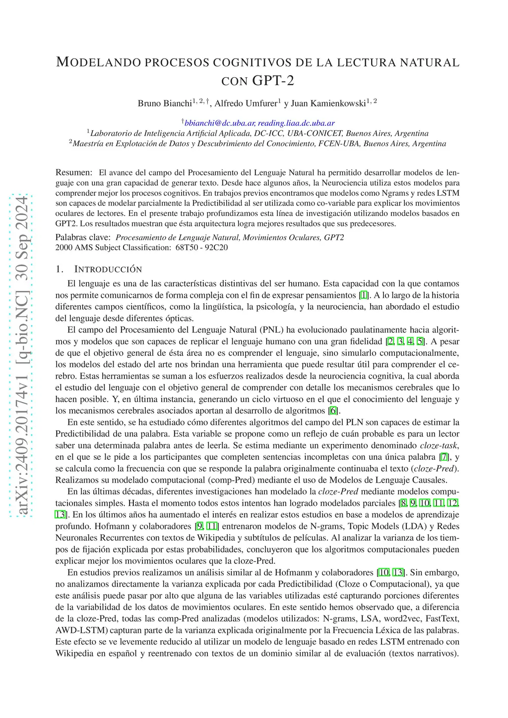 Modelando procesos cognitivos de la lectura natural con GPT-2