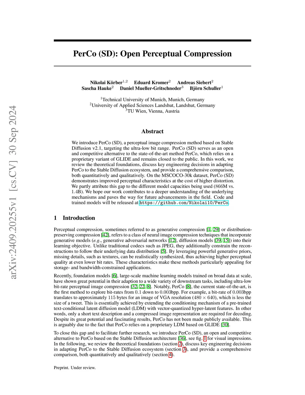 We introduce PerCo (SD), a perceptual image compression method based on Stable Diffusion v2.1, targeting the ultra-low bit range. PerCo (SD) serves as an open and competitive alternative to the state-of-the-art method PerCo, which relies on a proprietary variant of GLIDE and remains closed to the public. In this work, we review the theoretical foundations, discuss key engineering decisions in adapting PerCo to the Stable Diffusion ecosystem, and provide a comprehensive comparison, both quantitatively and qualitatively. On the MSCOCO-30k dataset, PerCo (SD) demonstrates improved perceptual characteristics at the cost of higher distortion. We partly attribute this gap to the different model capacities being used (866M vs. 1.4B). We hope our work contributes to a deeper understanding of the underlying mechanisms and paves the way for future advancements in the field. Code and trained models will be released at https://github.com/Nikolai10/PerCo.