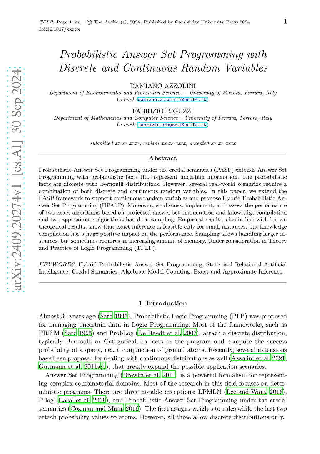 Probabilistic Answer Set Programming with Discrete and Continuous Random