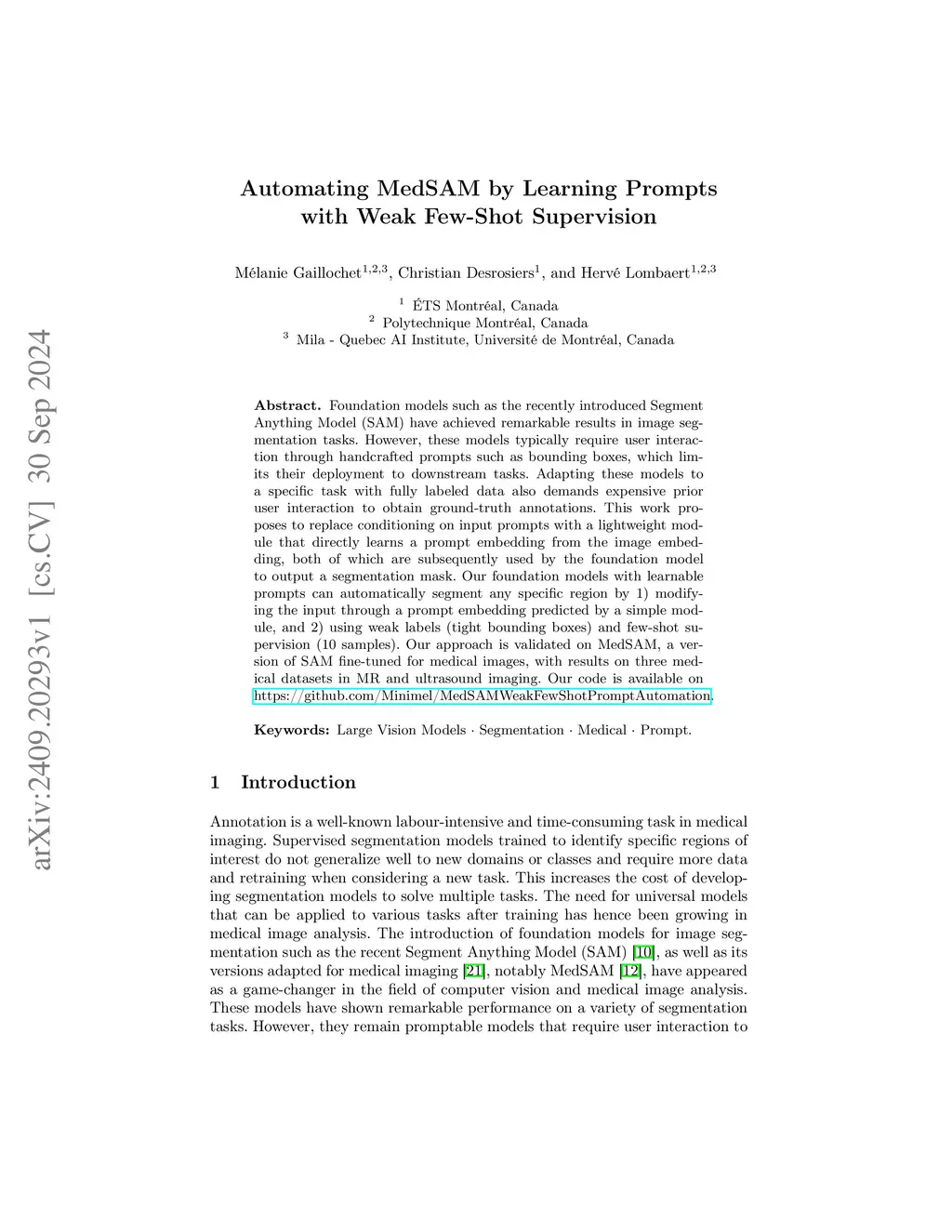 Automating MedSAM by Learning Prompts with Weak Few-Shot Supervision
