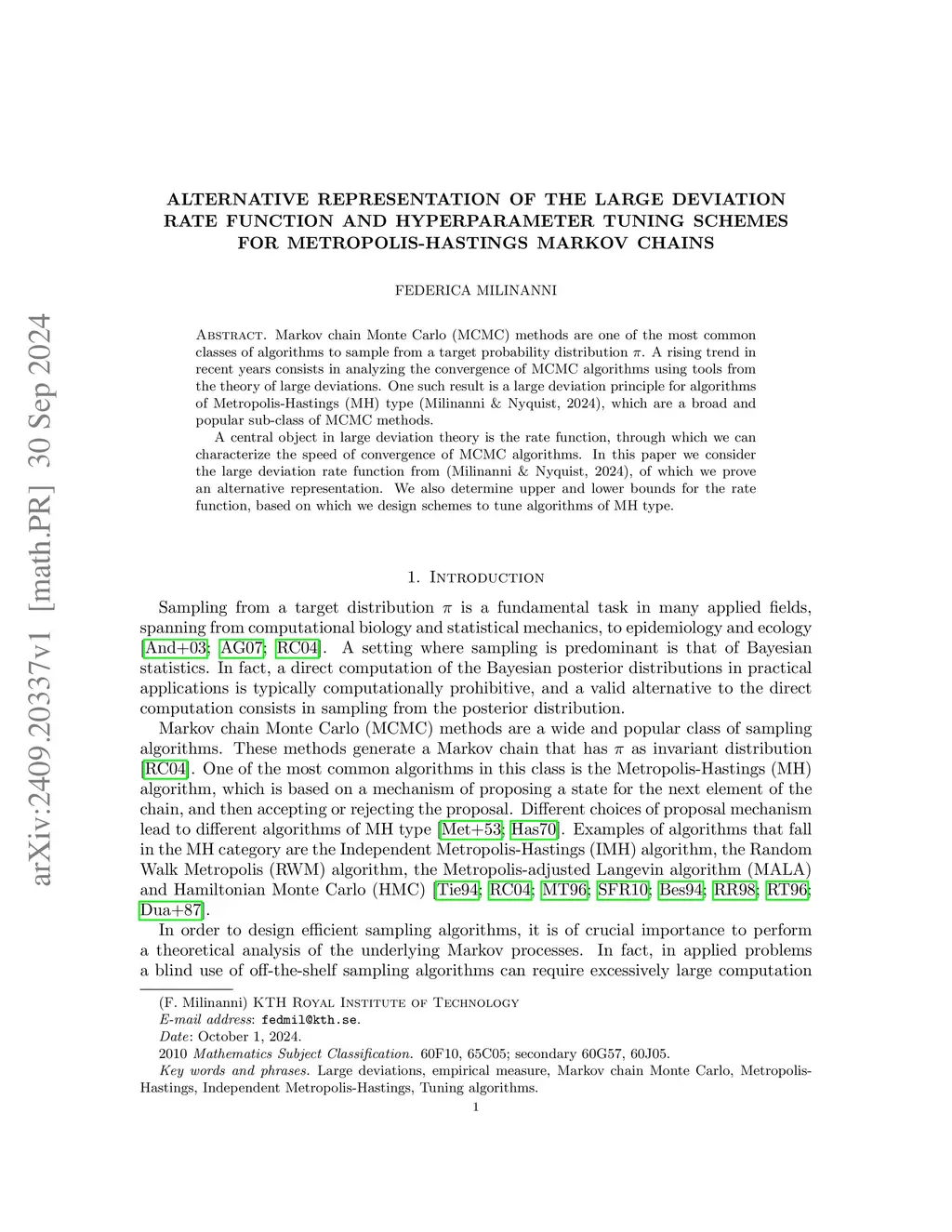 Markov chain Monte Carlo (MCMC) methods are one of the most common classes of algorithms to sample from a target probability distribution . A rising trend in recent years consists in analyzing the convergence of MCMC algorithms using tools from the theory of large deviations. One such result is a large deviation principle for algorithms of Metropolis-Hastings (MH) type (Milinanni & Nyquist, 2024), which are a broad and popular sub-class of MCMC methods. A central object in large deviation theory is the rate function, through which we can characterize the speed of convergence of MCMC algorithms. In this paper we consider the large deviation rate function from (Milinanni & Nyquist, 2024), of which we prove an alternative representation. We also determine upper and lower bounds for the rate function, based on which we design schemes to tune algorithms of MH type.