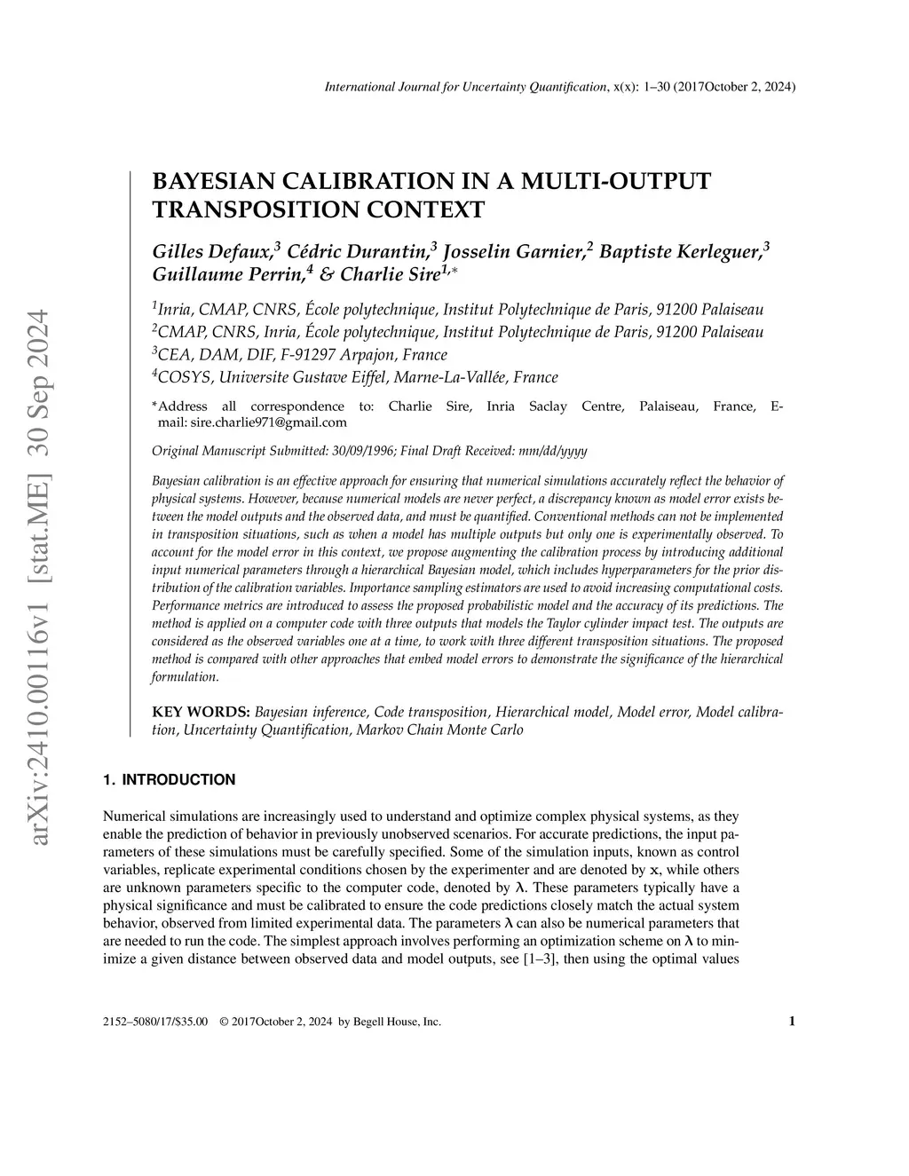 Bayesian calibration is an effective approach for ensuring that numerical simulations accurately reflect the behavior of physical systems. However, because numerical models are never perfect, a discrepancy known as model error exists between the model outputs and the observed data, and must be quantified. Conventional methods can not be implemented in transposition situations, such as when a model has multiple outputs but only one is experimentally observed. To account for the model error in this context, we propose augmenting the calibration process by introducing additional input numerical parameters through a hierarchical Bayesian model, which includes hyperparameters for the prior distribution of the calibration variables. Importance sampling estimators are used to avoid increasing computational costs. Performance metrics are introduced to assess the proposed probabilistic model and the accuracy of its predictions. The method is applied on a computer code with three outputs that models the Taylor cylinder impact test. The outputs are considered as the observed variables one at a time, to work with three different transposition situations. The proposed method is compared with other approaches that embed model errors to demonstrate the significance of the hierarchical formulation.