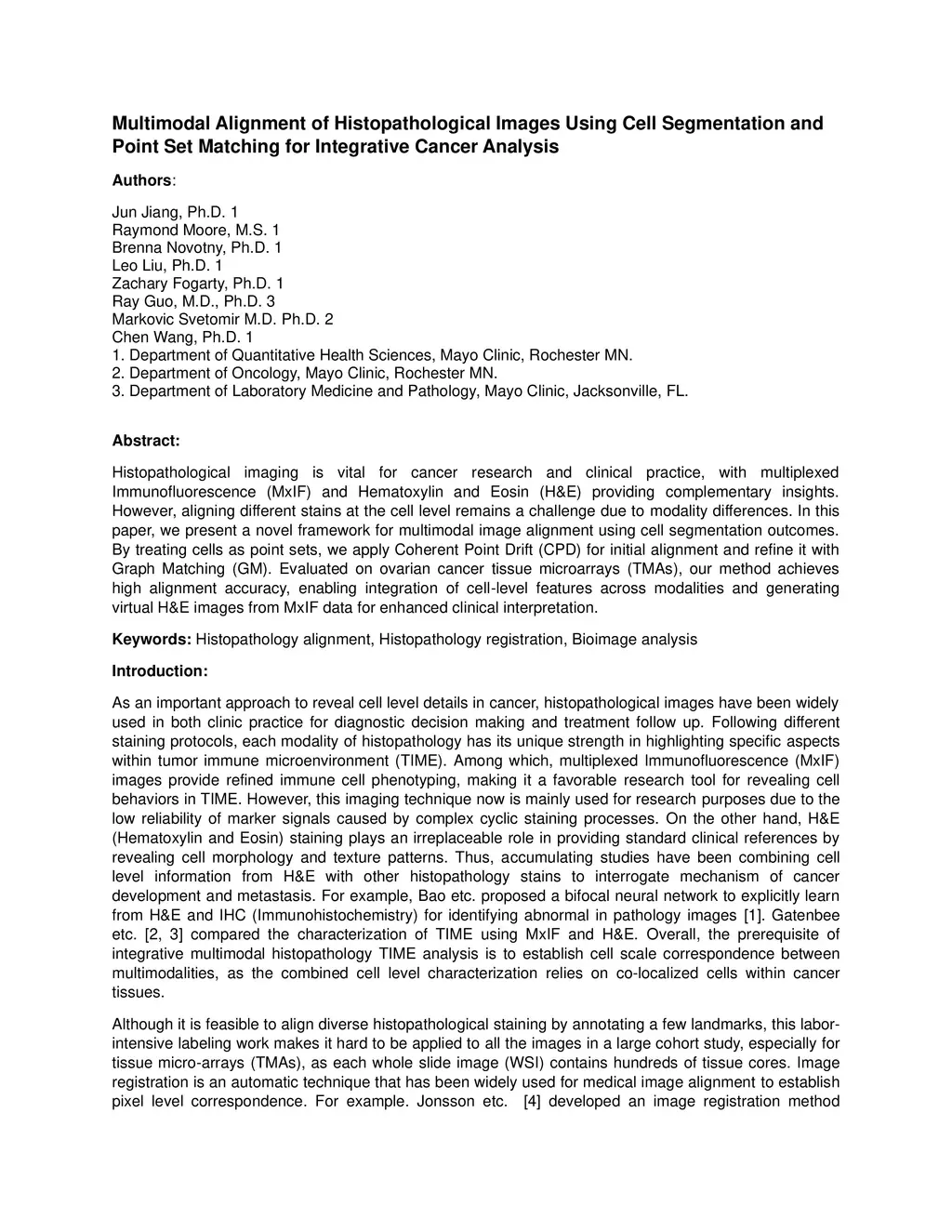 Multimodal Alignment of Histopathological Images Using Cell Segmentation