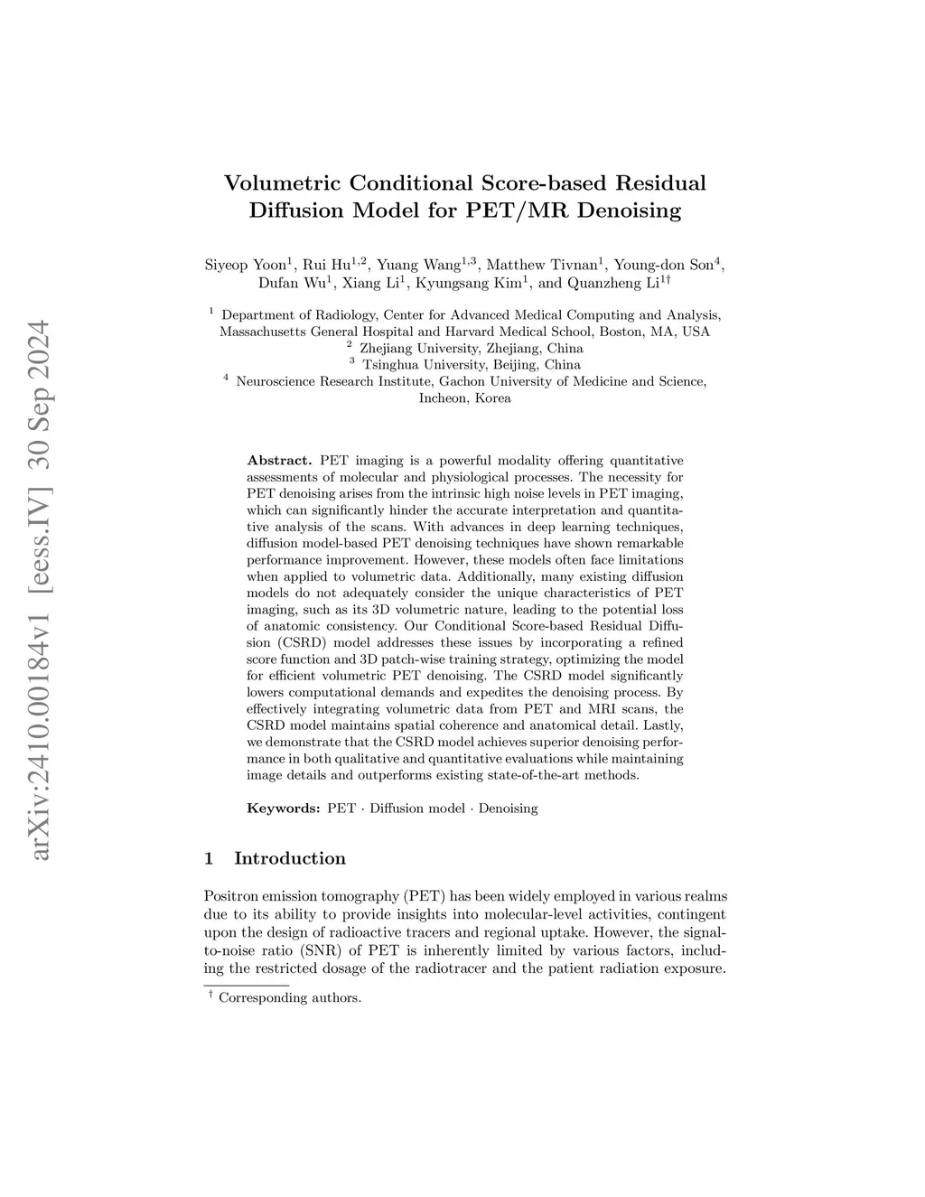 Volumetric Conditional Score-based Residual Diffusion Model for PET/MR