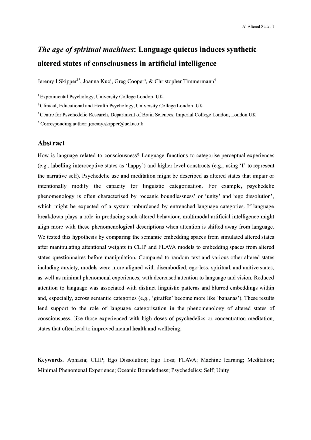 altered states of consciousness in artificial intelligence