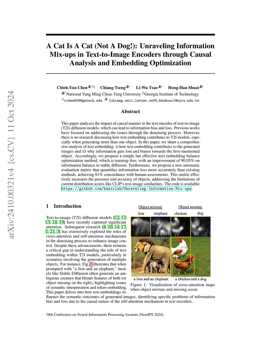 This paper analyzes the impact of causal manner in the text encoder of text-to-image (T2I) diffusion models, which can lead to information bias and loss. Previous works have focused on addressing the issues through the denoising process. However, there is no research discussing how text embedding contributes to T2I models, especially when generating more than one object. In this paper, we share a comprehensive analysis of text embedding: i) how text embedding contributes to the generated images and ii) why information gets lost and biases towards the first-mentioned object. Accordingly, we propose a simple but effective text embedding balance optimization method, which is training-free, with an improvement of 90.05% on information balance in stable diffusion. Furthermore, we propose a new automatic evaluation metric that quantifies information loss more accurately than existing methods, achieving 81% concordance with human assessments. This metric effectively measures the presence and accuracy of objects, addressing the limitations of current distribution scores like CLIP's text-image similarities.