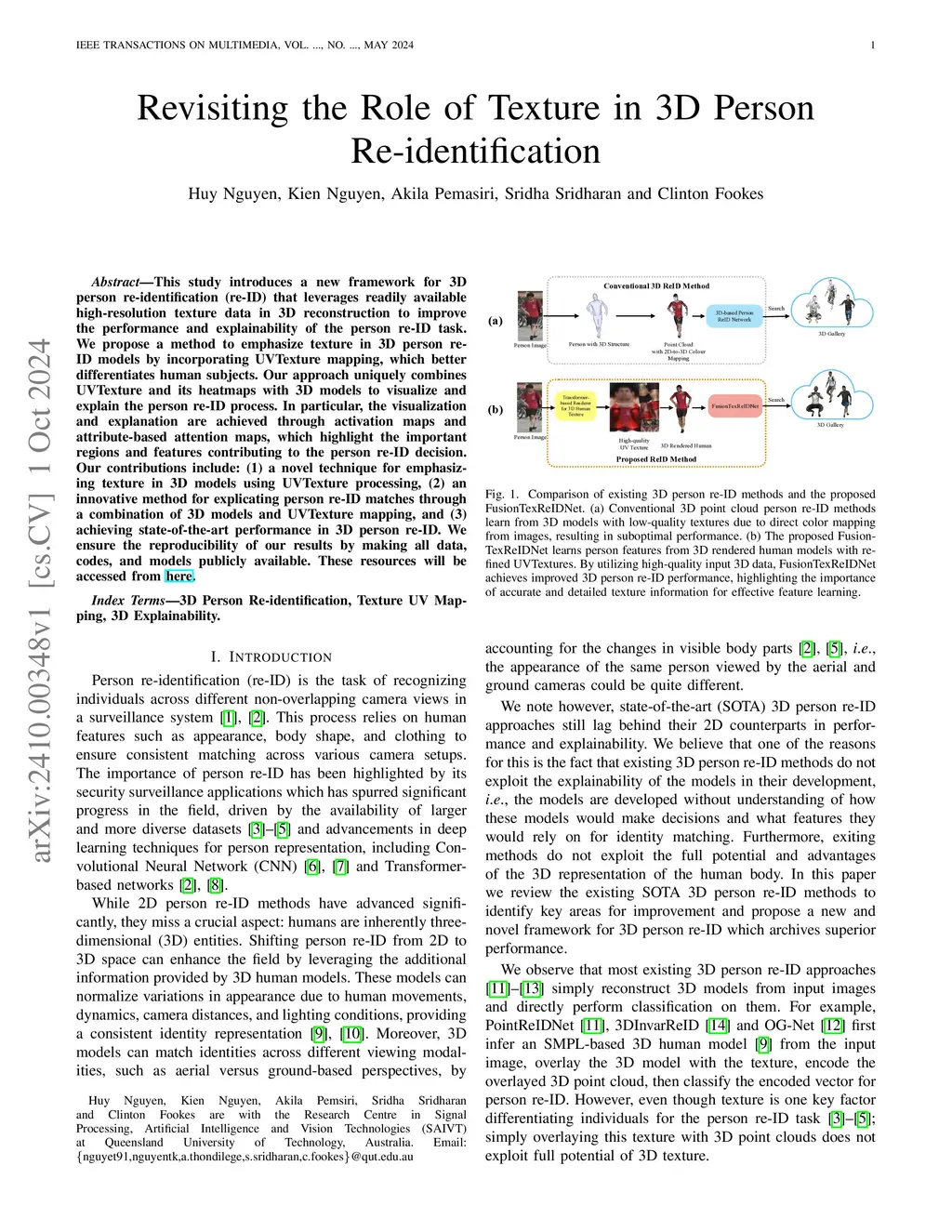 This study introduces a new framework for 3D person re-identification (re-ID) that leverages readily available high-resolution texture data in 3D reconstruction to improve the performance and explainability of the person re-ID task. We propose a method to emphasize texture in 3D person re-ID models by incorporating UVTexture mapping, which better differentiates human subjects. Our approach uniquely combines UVTexture and its heatmaps with 3D models to visualize and explain the person re-ID process. In particular, the visualization and explanation are achieved through activation maps and attribute-based attention maps, which highlight the important regions and features contributing to the person re-ID decision. Our contributions include: (1) a novel technique for emphasizing texture in 3D models using UVTexture processing, (2) an innovative method for explicating person re-ID matches through a combination of 3D models and UVTexture mapping, and (3) achieving state-of-the-art performance in 3D person re-ID. We ensure the reproducibility of our results by making all data, codes, and models publicly available.