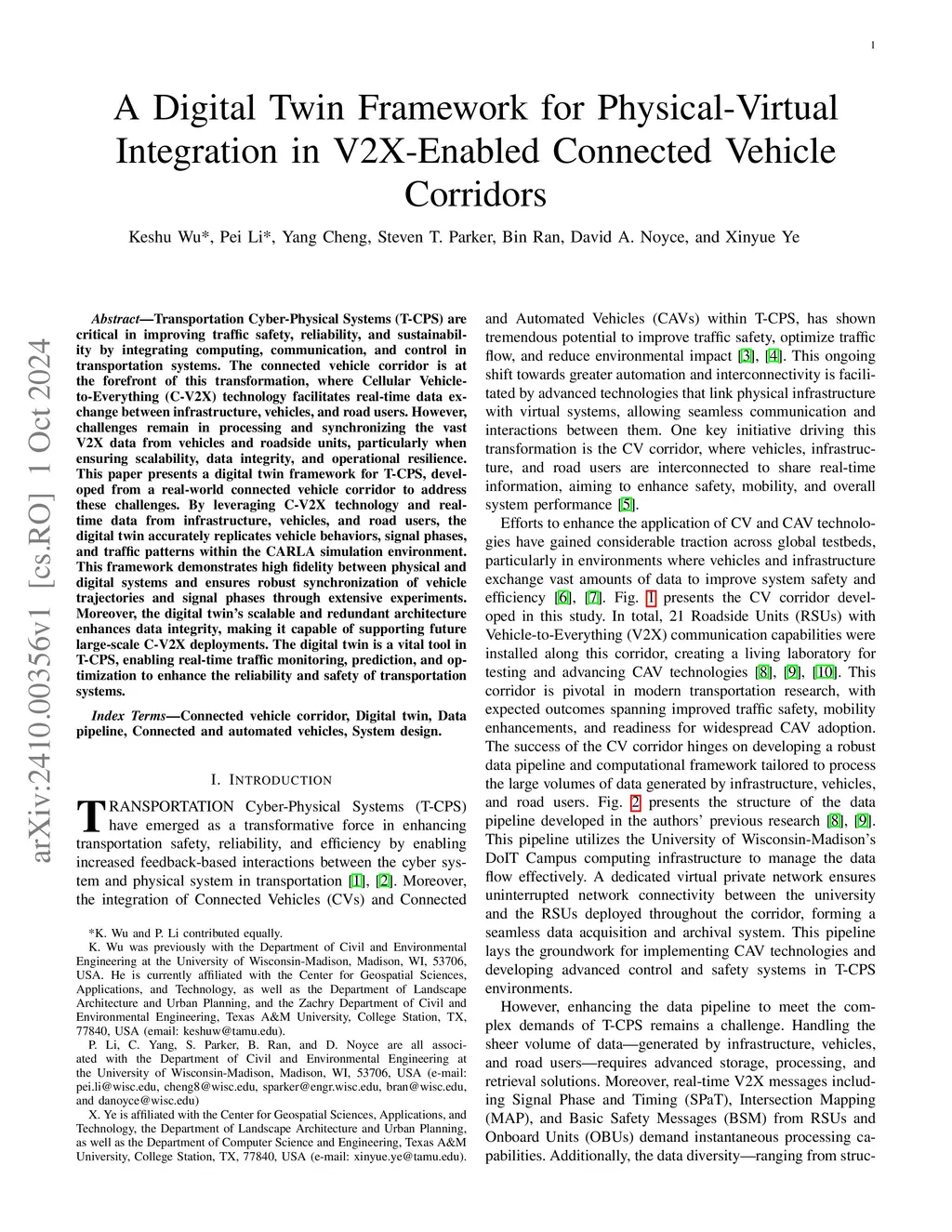 A Digital Twin Framework for Physical-Virtual Integration in V2X-Enabled Connected Vehicle Corridors