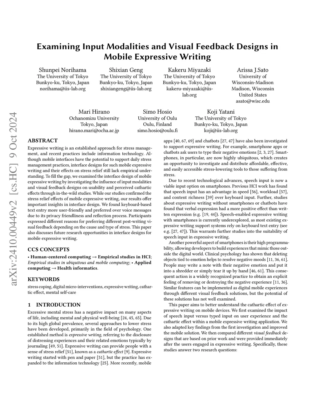 Expressive writing is an established approach for stress management, and recent practices include information technology. Although mobile interfaces have the potential to support daily stress management practices, interface designs for such mobile expressive writing and their effects on stress relief still lack empirical understanding. To fill the gap, we examined the interface design of mobile expressive writing by investigating the influence of input modalities and visual feedback designs on usability and perceived cathartic effects through in-the-wild studies. While our studies confirmed the stress relief effects of mobile expressive writing, our results offer important insights in interface design. We found keyboard-based text entry more user-friendly and preferred over voice messages due to its privacy friendliness and reflection process. Participants expressed different reasons for preferring different post-writing visual feedback depending on the cause and type of stress. This paper also discusses future research opportunities in interface designs for mobile expressive writing.