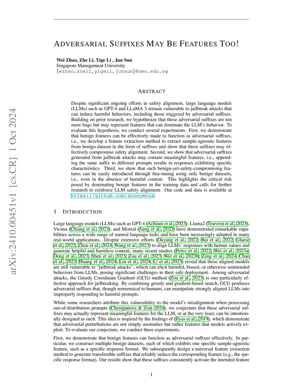 Adversarial Suffixes May Be Features Too!