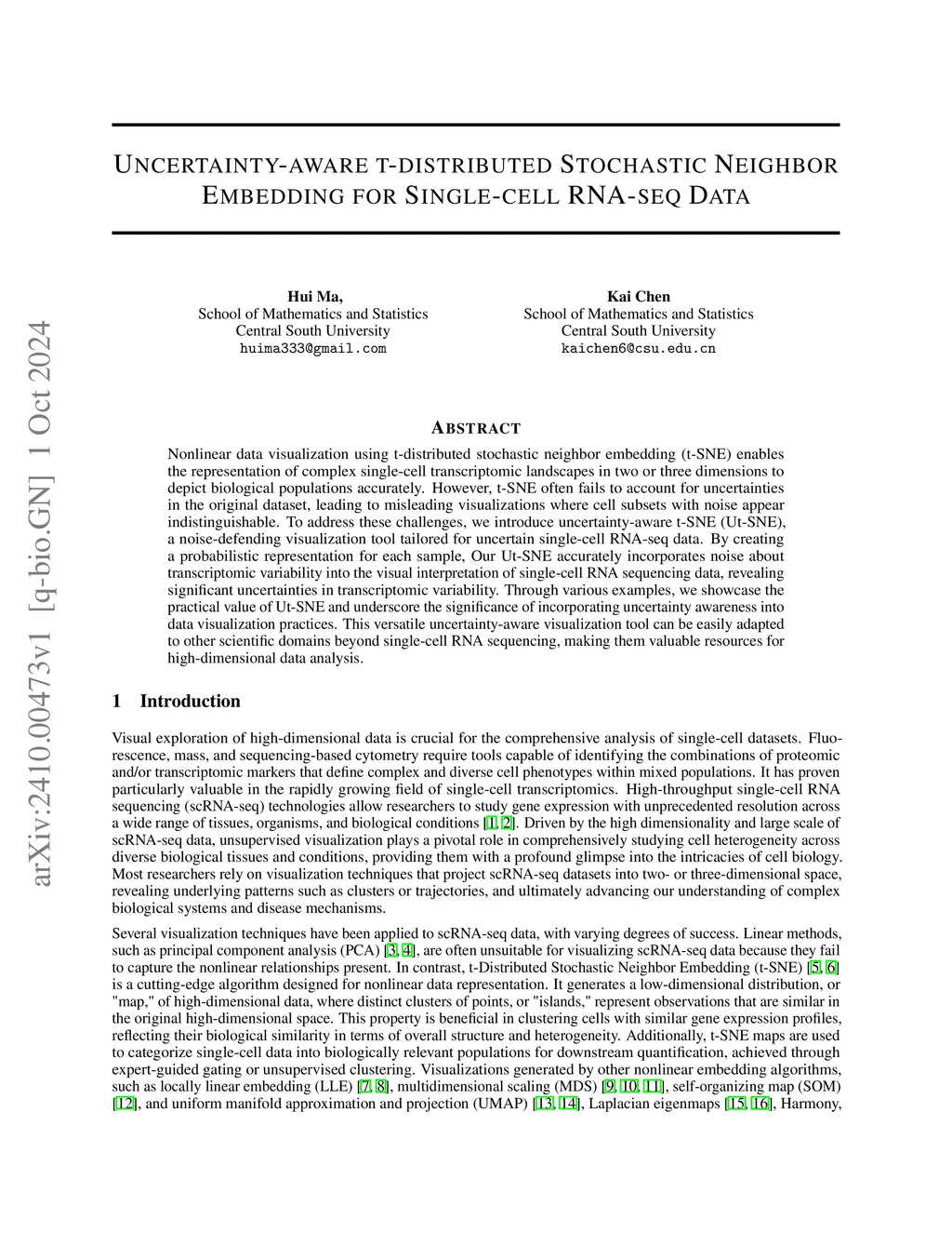 Nonlinear data visualization using t-distributed stochastic neighbor embedding (t-SNE) enables the representation of complex single-cell transcriptomic landscapes in two or three dimensions to depict biological populations accurately. However, t-SNE often fails to account for uncertainties in the original dataset, leading to misleading visualizations where cell subsets with noise appear indistinguishable. To address these challenges, we introduce uncertainty-aware t-SNE (Ut-SNE), a noise-defending visualization tool tailored for uncertain single-cell RNA-seq data. By creating a probabilistic representation for each sample, Our Ut-SNE accurately incorporates noise about transcriptomic variability into the visual interpretation of single-cell RNA sequencing data, revealing significant uncertainties in transcriptomic variability. Through various examples, we showcase the practical value of Ut-SNE and underscore the significance of incorporating uncertainty awareness into data visualization practices. This versatile uncertainty-aware visualization tool can be easily adapted to other scientific domains beyond single-cell RNA sequencing, making them valuable resources for high-dimensional data analysis.