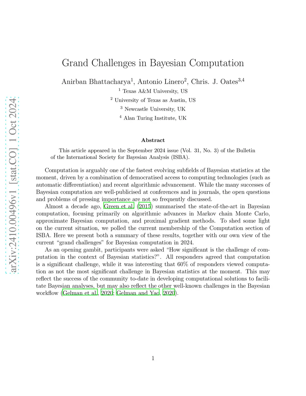This article appeared in the September 2024 issue (Vol. 31, No. 3) of the Bulletin of the International Society for Bayesian Analysis (ISBA).