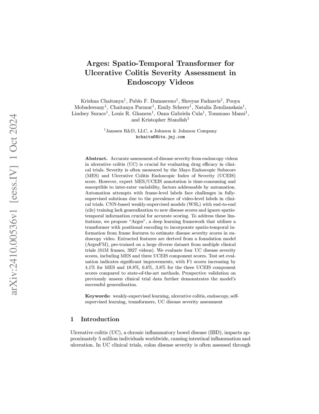 Arges: Spatio-Temporal Transformer for Ulcerative Colitis Severity