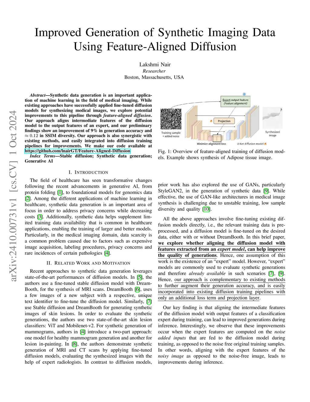 Improved Generation of Synthetic Imaging Data Using Feature-Aligned