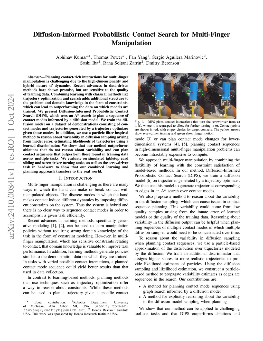 Diffusion-Informed Probabilistic Contact Search for Multi-Finger