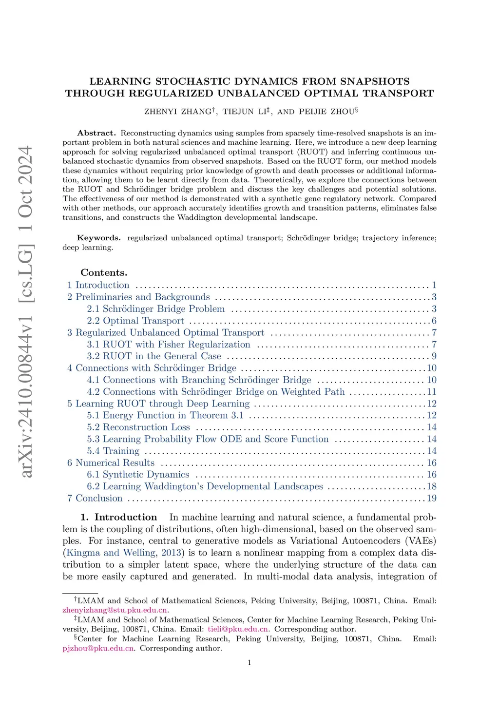 Learning stochastic dynamics from snapshots through regularized unbalanced optimal transport