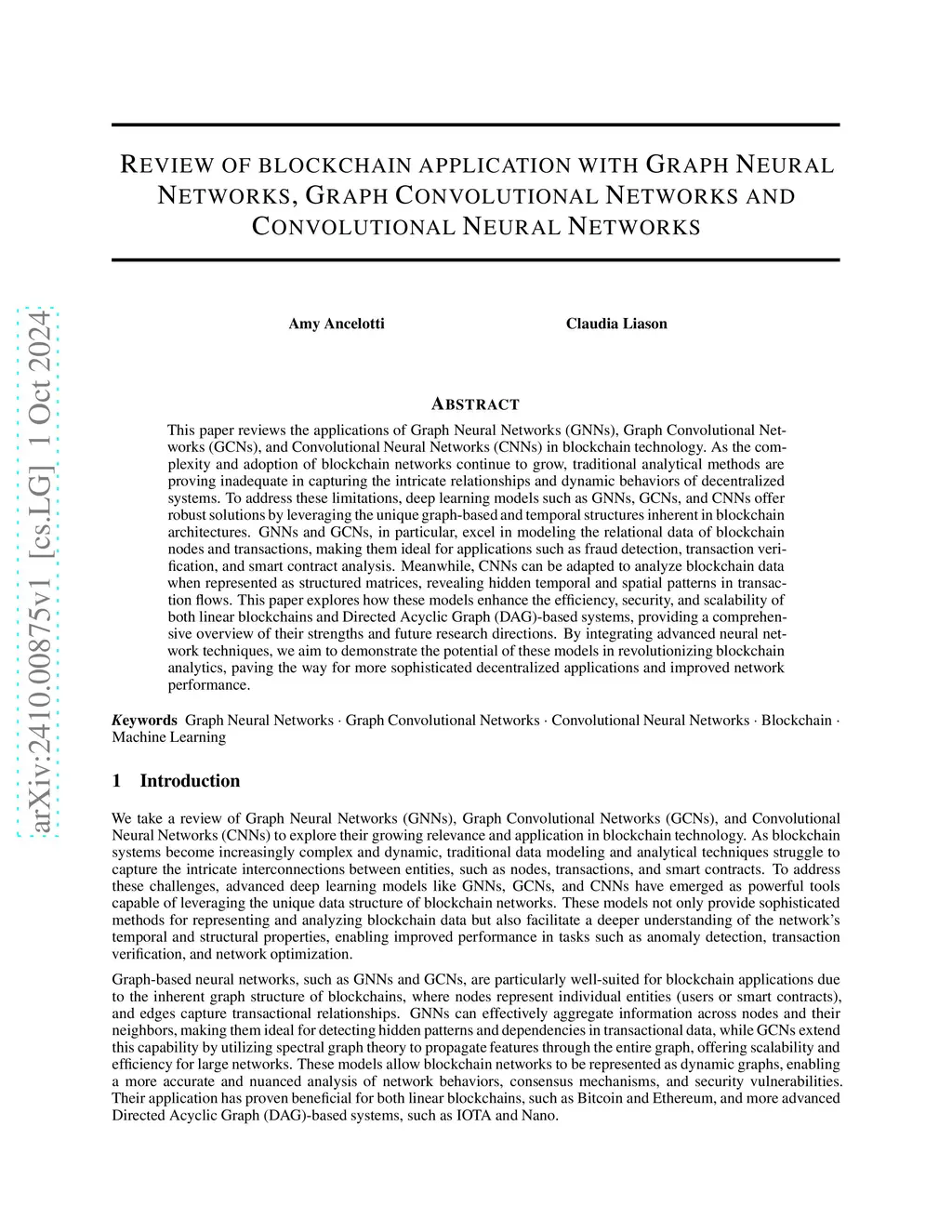 Review of blockchain application with Graph Neural Networks, Graph