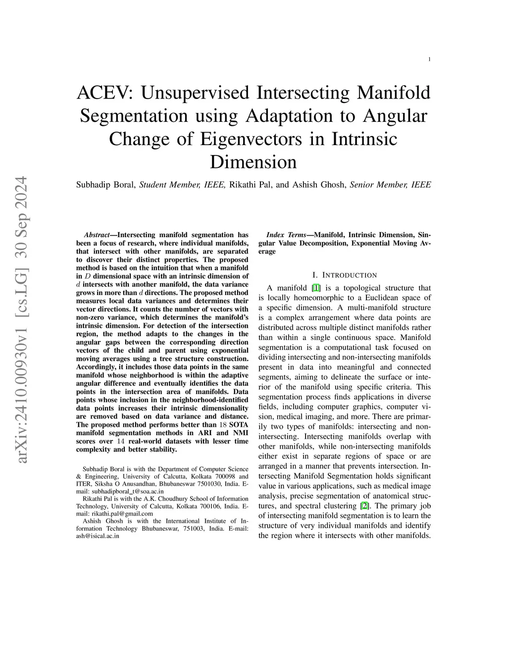ACEV: Unsupervised Intersecting Manifold Segmentation using Adaptation