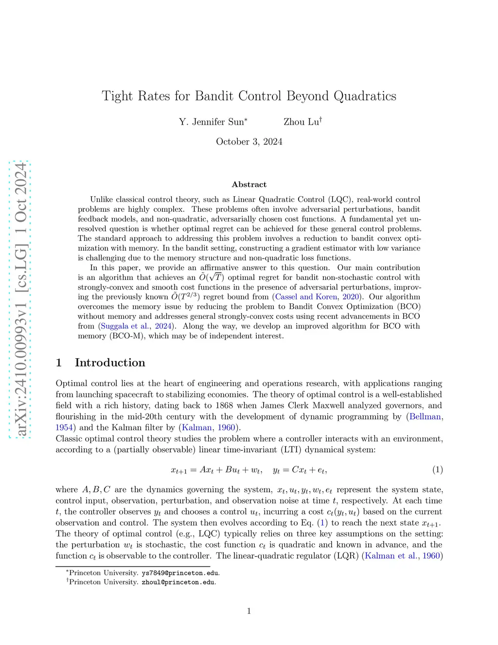 Unlike classical control theory, such as Linear Quadratic Control (LQC), real-world control problems are highly complex. These problems often involve adversarial perturbations, bandit feedback models, and non-quadratic, adversarially chosen cost functions. A fundamental yet unresolved question is whether optimal regret can be achieved for these general control problems. The standard approach to addressing this problem involves a reduction to bandit convex optimization with memory. In the bandit setting, constructing a gradient estimator with low variance is challenging due to the memory structure and non-quadratic loss functions. In this paper, we provide an affirmative answer to this question. Our main contribution is an algorithm that achieves an optimal regret for bandit non-stochastic control with strongly-convex and smooth cost functions in the presence of adversarial perturbations, improving the previously known regret bound from (Cassel and Koren, 2020. Our algorithm overcomes the memory issue by reducing the problem to Bandit Convex Optimization (BCO) without memory and addresses general strongly-convex costs using recent advancements in BCO from (Suggala et al., 2024). Along the way, we develop an improved algorithm for BCO with memory, which may be of independent interest.