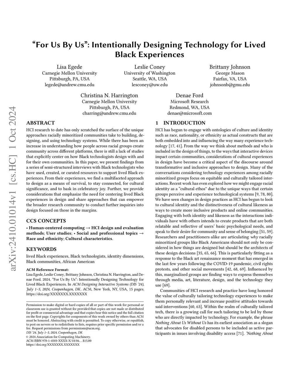"For Us By Us": Intentionally Designing Technology for Lived Black