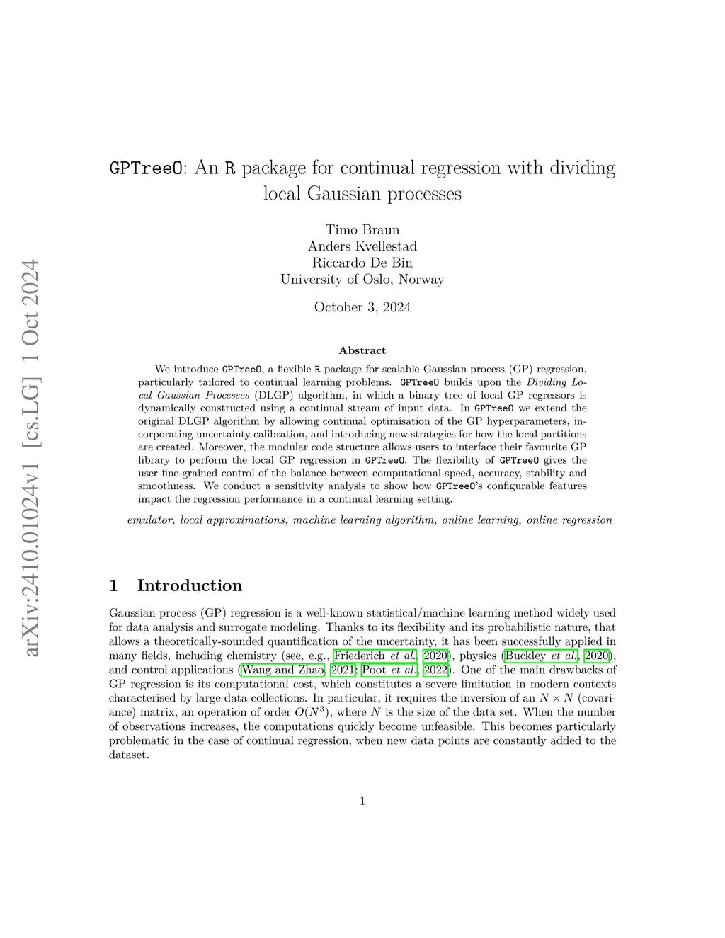 We introduce GPTreeO, a flexible R package for scalable Gaussian process (GP) regression, particularly tailored to continual learning problems. GPTreeO builds upon the Dividing Local Gaussian Processes (DLGP) algorithm, in which a binary tree of local GP regressors is dynamically constructed using a continual stream of input data. In GPTreeO we extend the original DLGP algorithm by allowing continual optimisation of the GP hyperparameters, incorporating uncertainty calibration, and introducing new strategies for how the local partitions are created. Moreover, the modular code structure allows users to interface their favourite GP library to perform the local GP regression in GPTreeO. The flexibility of GPTreeO gives the user fine-grained control of the balance between computational speed, accuracy, stability and smoothness. We conduct a sensitivity analysis to show how GPTreeO's configurable features impact the regression performance in a continual learning setting.