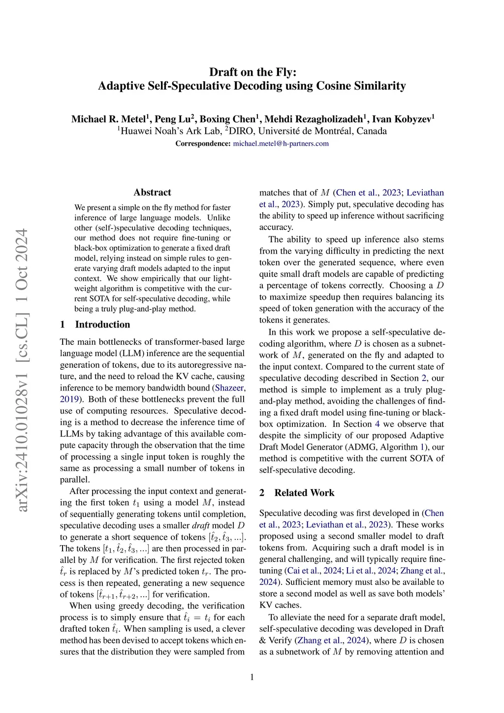 We present a simple on the fly method for faster inference of large language models. Unlike other (self-)speculative decoding techniques, our method does not require fine-tuning or black-box optimization to generate a fixed draft model, relying instead on simple rules to generate varying draft models adapted to the input context. We show empirically that our light-weight algorithm is competitive with the current SOTA for self-speculative decoding, while being a truly plug-and-play method.