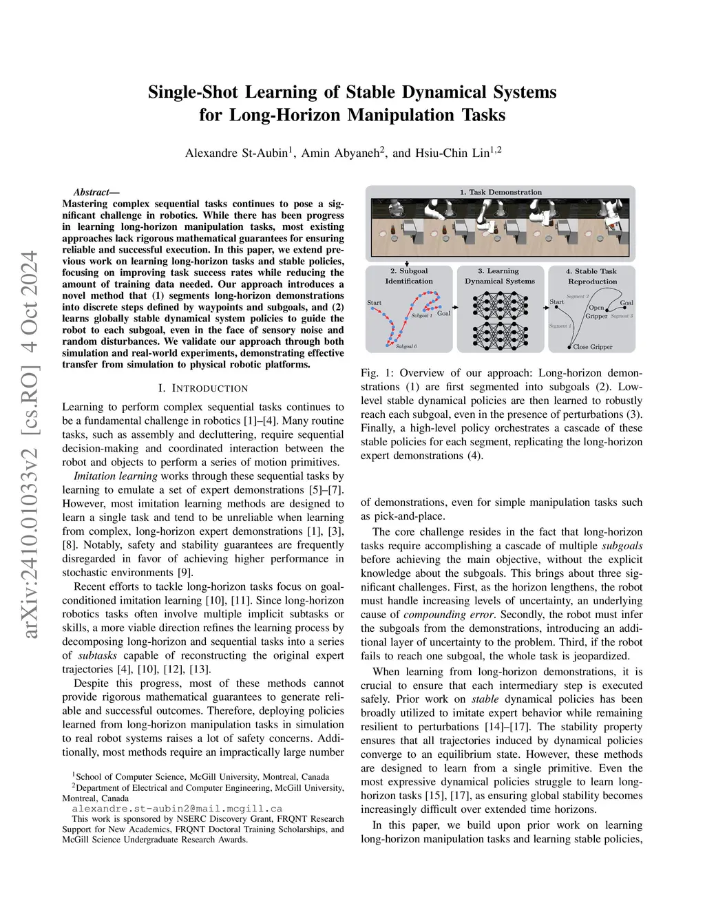 Single-Shot Learning of Stable Dynamical Systems for Long-Horizon
