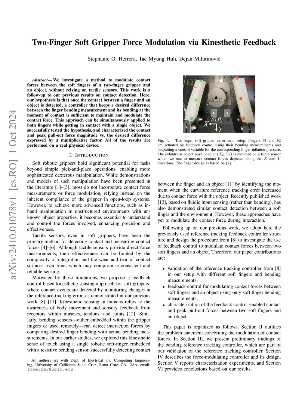 Two-Finger Soft Gripper Force Modulation via Kinesthetic Feedback