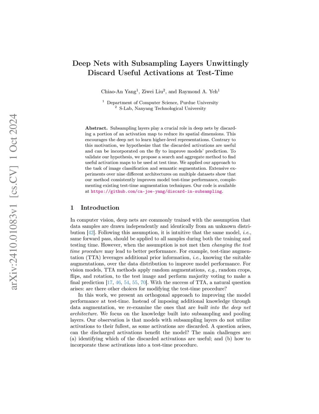 Subsampling layers play a crucial role in deep nets by discarding a portion of an activation map to reduce its spatial dimensions. This encourages the deep net to learn higher-level representations. Contrary to this motivation, we hypothesize that the discarded activations are useful and can be incorporated on the fly to improve models' prediction. To validate our hypothesis, we propose a search and aggregate method to find useful activation maps to be used at test time. We applied our approach to the task of image classification and semantic segmentation. Extensive experiments over nine different architectures on multiple datasets show that our method consistently improves model test-time performance, complementing existing test-time augmentation techniques. Our code is available at https://github.com/ca-joe-yang/discard-in-subsampling.
