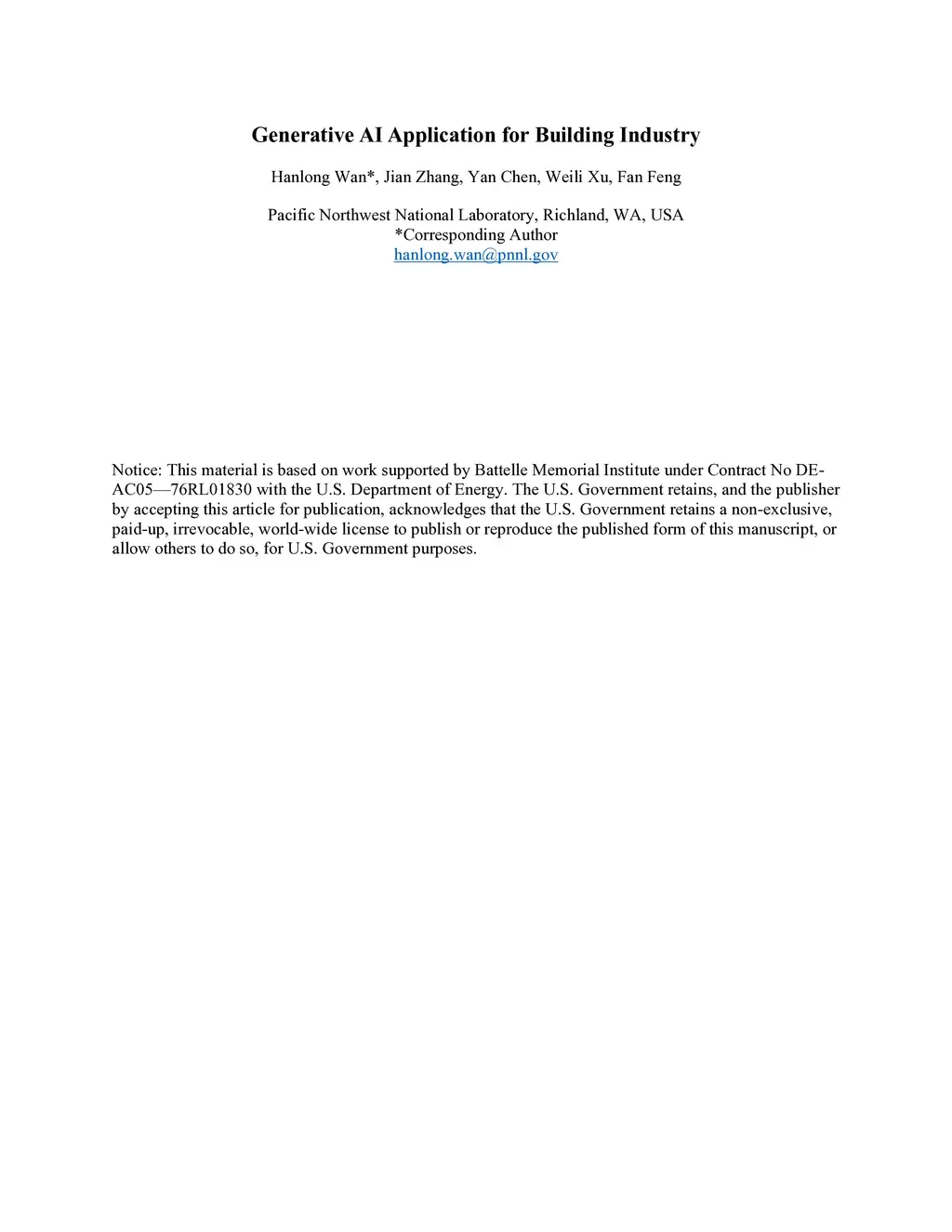 This paper investigates the transformative potential of Generative AI (Gen-AI) technologies, particularly large language models, within the building industry. By leveraging these advanced AI tools, the study explores their application across key areas such as automated compliance checking and building design assistance. The research highlights how Gen-AI can automate labor-intensive processes, significantly improving efficiency and reducing costs in building practices. The paper first discusses the two widely applied fundamental models-Transformer and Diffusion model-and summarizes current pathways for accessing Gen-AI models and the most common techniques for customizing them. It then explores applications for text generation, such as compliance checking, control support, data mining, and building simulation input file editing. Additionally, it examines image generation, including direct generation through diffusion models and indirect generation through language model-supported template creation based on existing Computer-Aided Design or other design tools with rendering. The paper concludes with a comprehensive analysis of the current capabilities of Gen-AI in the building industry, outlining future directions for research and development, with the goal of paving the way for smarter, more effective, and responsive design, construction, and operational practices.