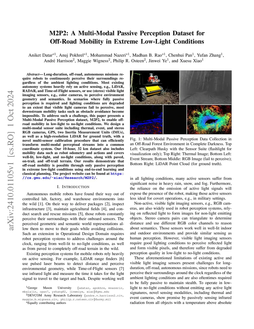 M2P2: A Multi-Modal Passive Perception Dataset for Off-Road Mobility in Extreme Low-Light Conditions