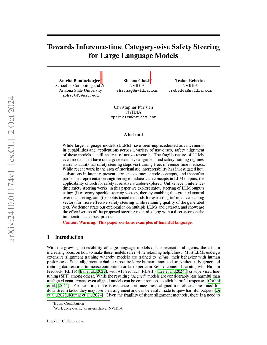 Towards Inference-time Category-wise Safety Steering for Large Language