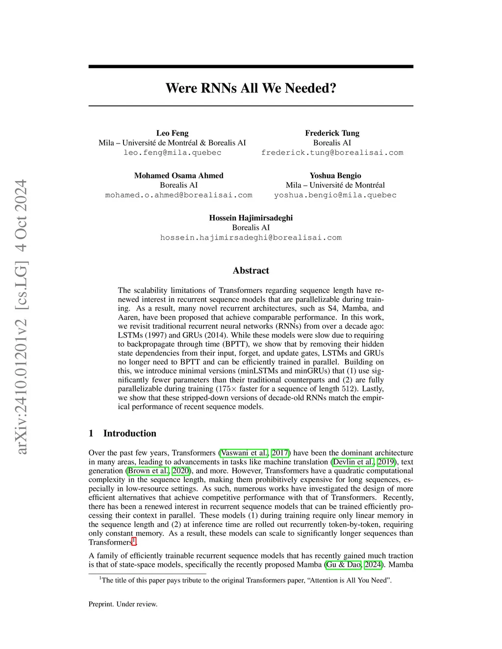 Were RNNs All We Needed?