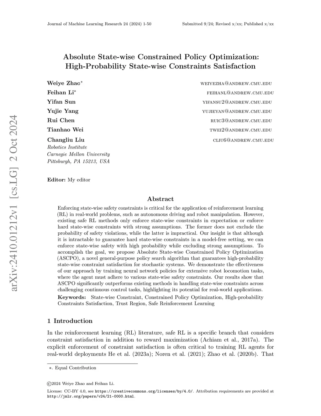 Absolute State-wise Constrained Policy Optimization: High-Probability