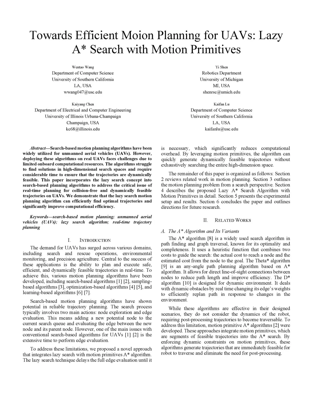 Towards Efficient Motion Planning for UAVs: Lazy A* Search with Motion