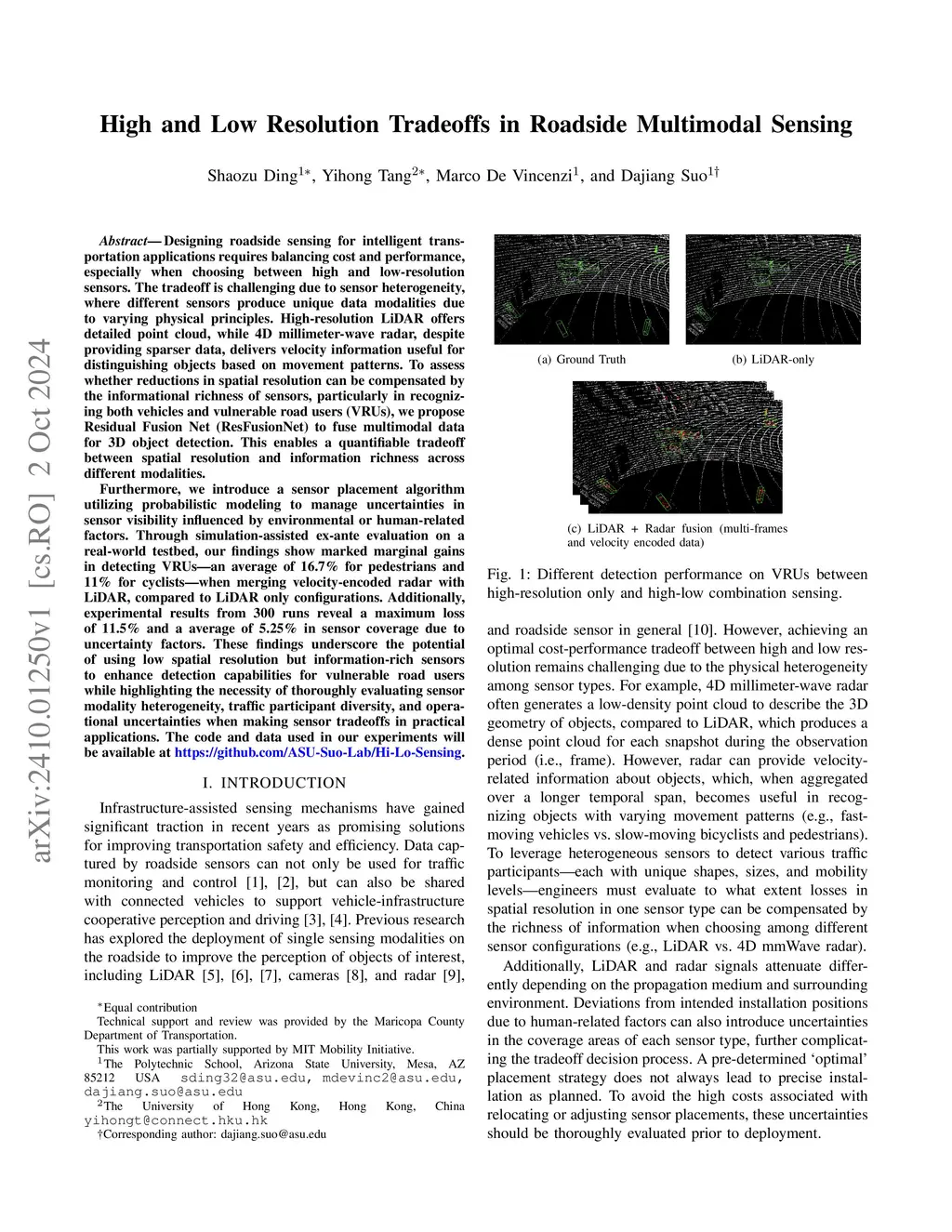 High and Low Resolution Tradeoffs in Roadside Multimodal Sensing