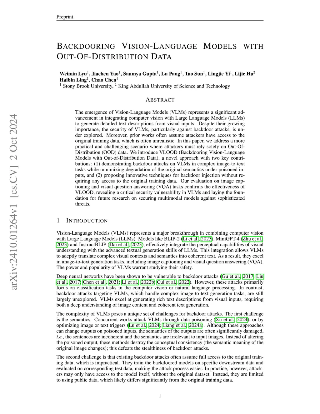 Backdooring Vision-Language Models with Out-Of-Distribution Data