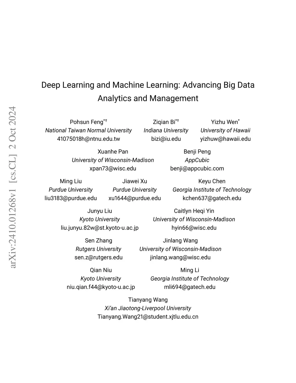 Deep Learning and Machine Learning, Advancing Big Data Analytics and Management: Unveiling AI's Potential Through Tools, Techniques, and Applications