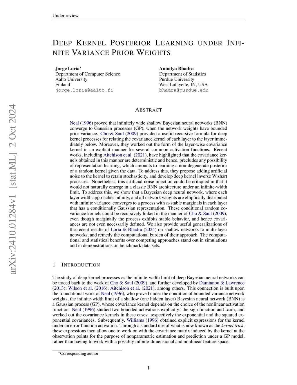 Deep Kernel Posterior Learning under Infinite Variance Prior Weights