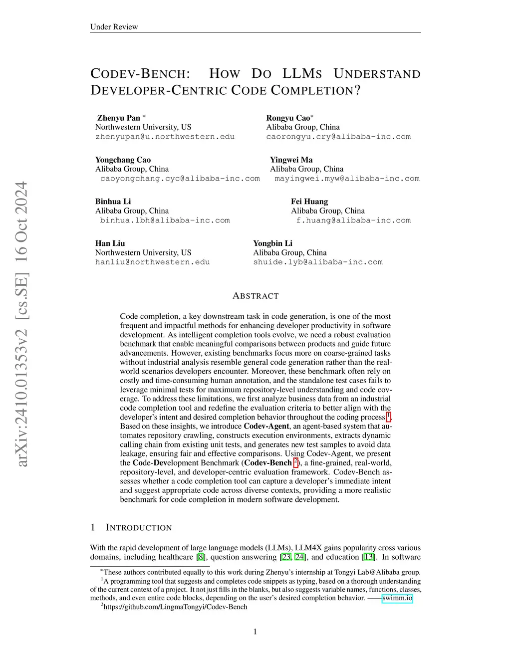 Code completion, a key downstream task in code generation, is one of the most frequent and impactful methods for enhancing developer productivity in software development. As intelligent completion tools evolve, we need a robust evaluation benchmark that enables meaningful comparisons between products and guides future advancements. However, existing benchmarks focus more on coarse-grained tasks without industrial analysis resembling general code generation rather than the real-world scenarios developers encounter. Moreover, these benchmarks often rely on costly and time-consuming human annotation, and the standalone test cases fail to leverage minimal tests for maximum repository-level understanding and code coverage. To address these limitations, we first analyze business data from an industrial code completion tool and redefine the evaluation criteria to better align with the developer's intent and desired completion behavior throughout the coding process. Based on these insights, we introduce Codev-Agent, an agent-based system that automates repository crawling, constructs execution environments, extracts dynamic calling chains from existing unit tests, and generates new test samples to avoid data leakage, ensuring fair and effective comparisons. Using Codev-Agent, we present the Code-Development Benchmark (Codev-Bench), a fine-grained, real-world, repository-level, and developer-centric evaluation framework. Codev-Bench assesses whether a code completion tool can capture a developer's immediate intent and suggest appropriate code across diverse contexts, providing a more realistic benchmark for code completion in modern software development.