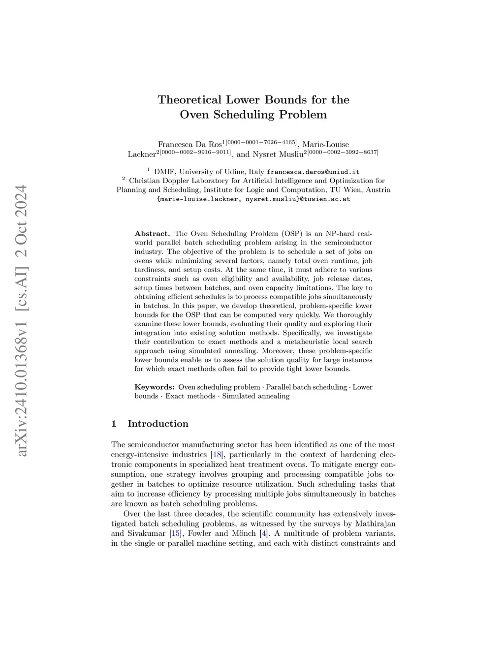 Theoretical Lower Bounds for the Oven Scheduling Problem